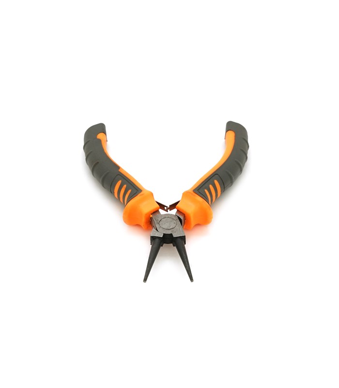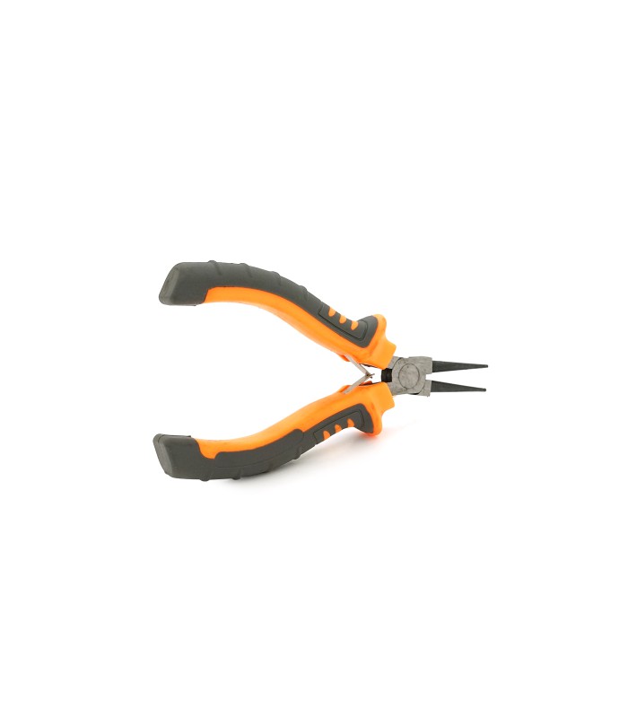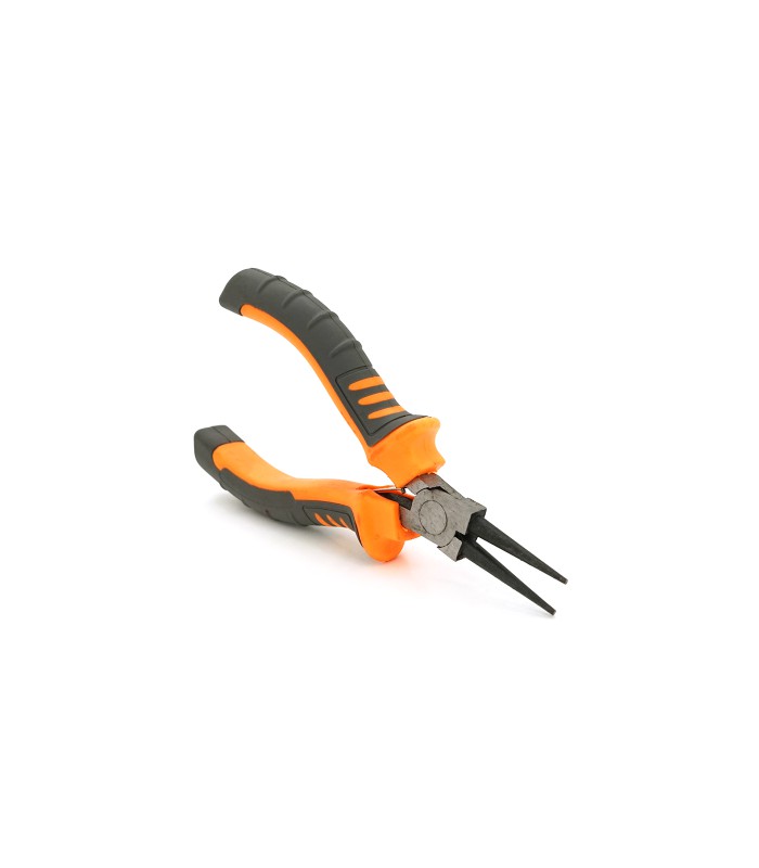 Круглогубцы с серо-оранжевыми ручками, длиной 125 мм и весом 55 грамм.