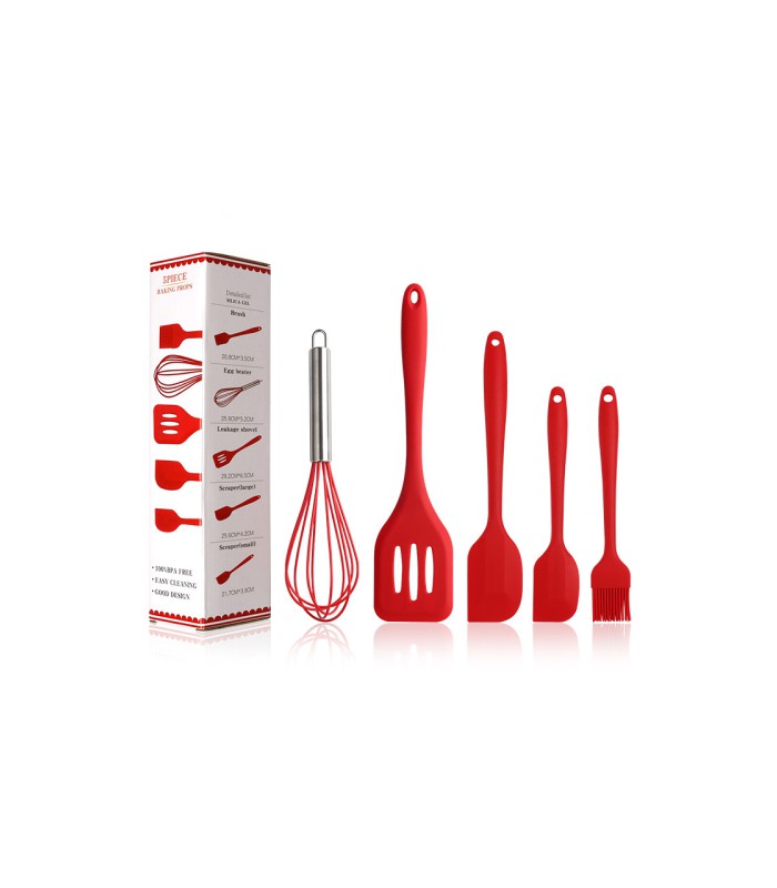 Кухонный набор из 5 предметов представляет собой удобный комплект инструментов для приготовления пищи и выпечки. Набор включает в себя венчик, 3 лопатки и кисть, изготовленные из высококачественного пищевого силикона.