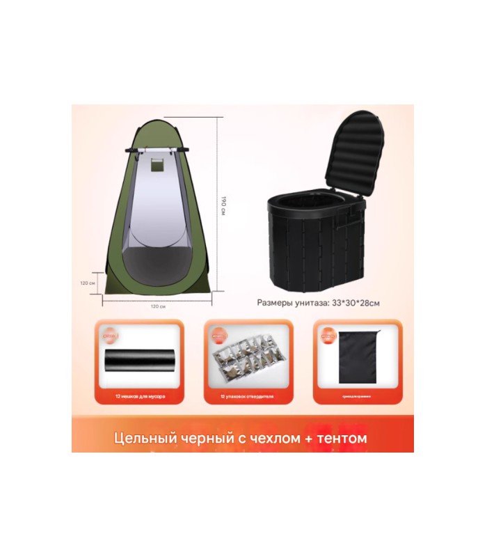 Дорожный складной туалет, с тентом и крышкой, 12 пакетов, 12 отвердителей, держатель для бумаги, сумка для хранения, пластик, 33 Новинка