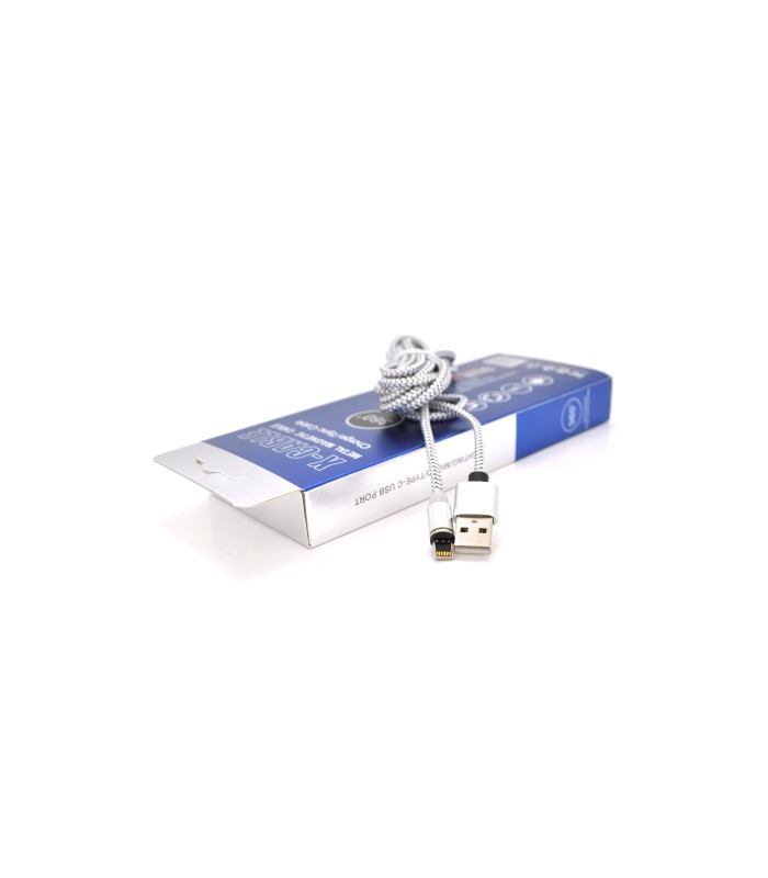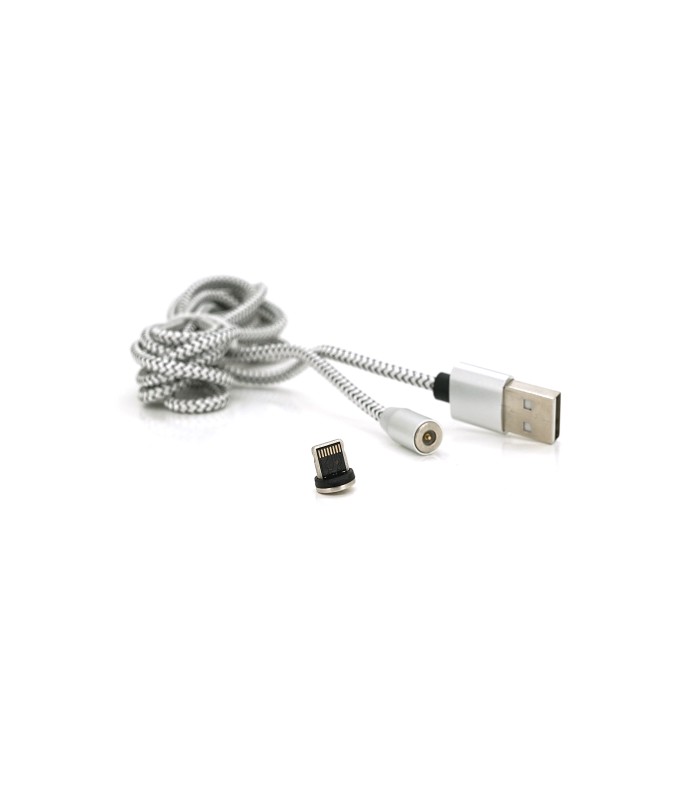 Магнитный кабель PiPo USB 2.0/Lighting, 2m, 2А, тканевая оплетка, бронированный, съемник, Silver, BOX