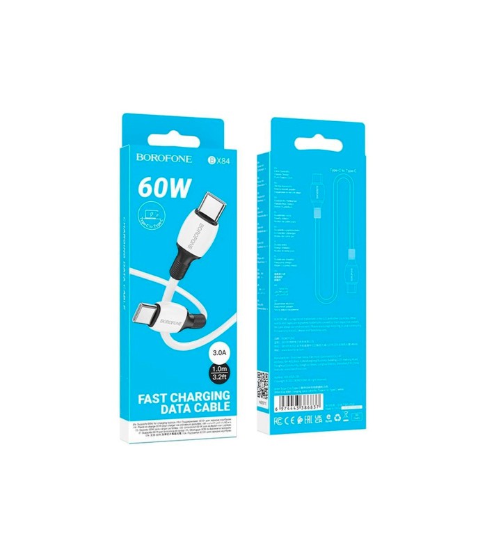 Кабель Borofone BX84 - это качественный кабель Type-C-Type-C, который обеспечивает быструю зарядку и передачу данных. Его длина составляет 1 метр, и он поставляется в белом цвете в удобной упаковке.