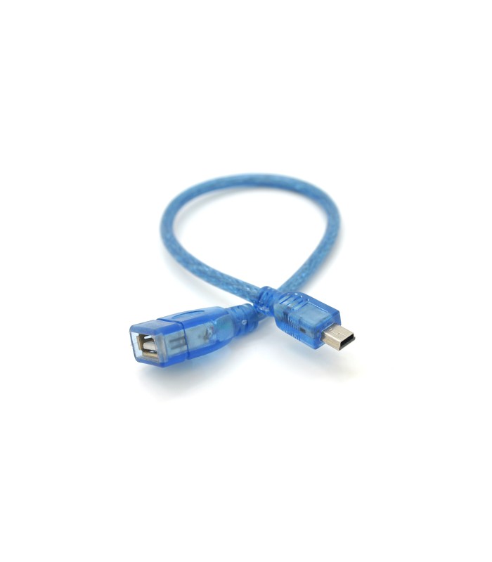 Этот кабель USB 2.0 AF/Mini-B OTG имеет длину 0.3 метра и выполнен в прозрачном синем цвете. Он предназначен для подключения устройств с Mini-B разъемом к другим устройствам с USB 2.0 разъемом.
