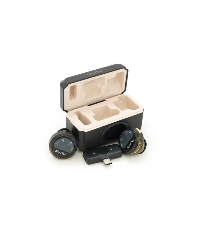 Петличный беспроводной микрофон NeePho NP-58 (2шт) в кейсе, разъем TYPE-C, встроенный аккумулятор 300 mAh, Black, Box