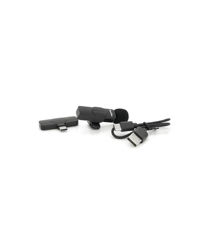 Тип: конденсаторный Материал: пластик Способ установки/крепления: петличный Подключение устройства: беспроводное Направленность: всенаправленный Размеры микрофона: 45х27х7 мм Размеры передатчика: 43х16х6 мм Радиус действия: до 20 м Тип подключения: Plug&Play Частота: 2,4 ГГц Порт зарядки: Type-C Цвет: черный