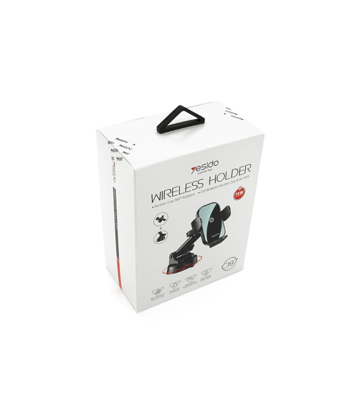 Автодержатель Yesido C197+ Wireless Charging 15W, крепление на торпеду, защелка 50-90мм, Black, Box