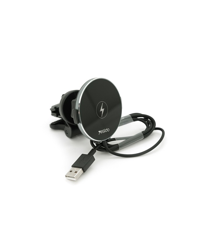 Автодержатель Yesido C131+ Wireless Charging 15W, крепление на решетку, магнит, Black, Box