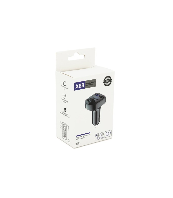 FM-модулятор X88 представляет собой компактное устройство, предназначенное для передачи аудиосигнала с USB или TF носителя на автомобильный стереоприемник. Габариты устройства составляют 49.5х41х36 мм, что делает его легким и удобным в использовании.