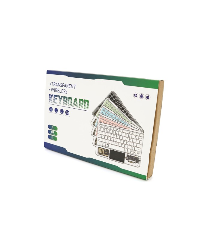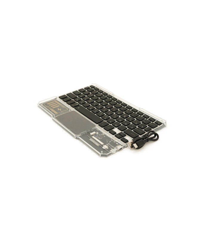 Клавиатура беспроводная YT-K333, раскладная, 78 клавиш, Touchpad, (Eng / Pyc), 2.4G, встроенный акккум, 245x165mm, Black/Transpa