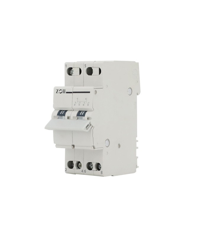 Автоматический переключатель Zoii – качественное изделие, используемое для ручного переключения из основного источника линии электроснабжения 220 вольт на резервную. Этот прибор переключает фазу и ноль одновременно. Вводимые линии подсоединяются снизу, нагрузка подсоединяется сверху.