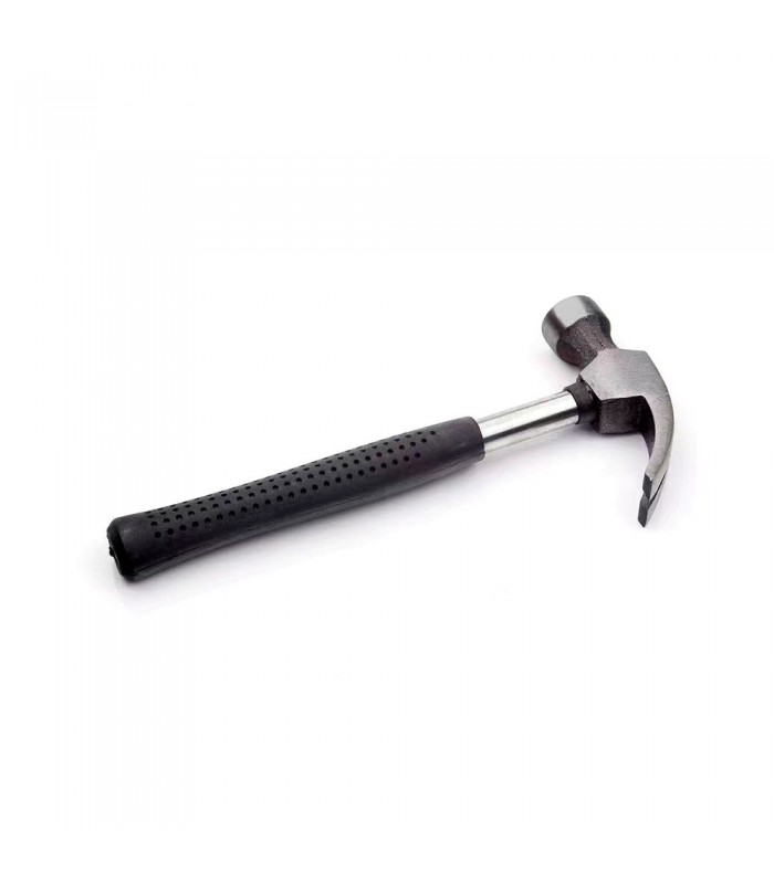 Молоток с гвоздодером 208 мм, с прорезиненной ручкой, черного цвета.
