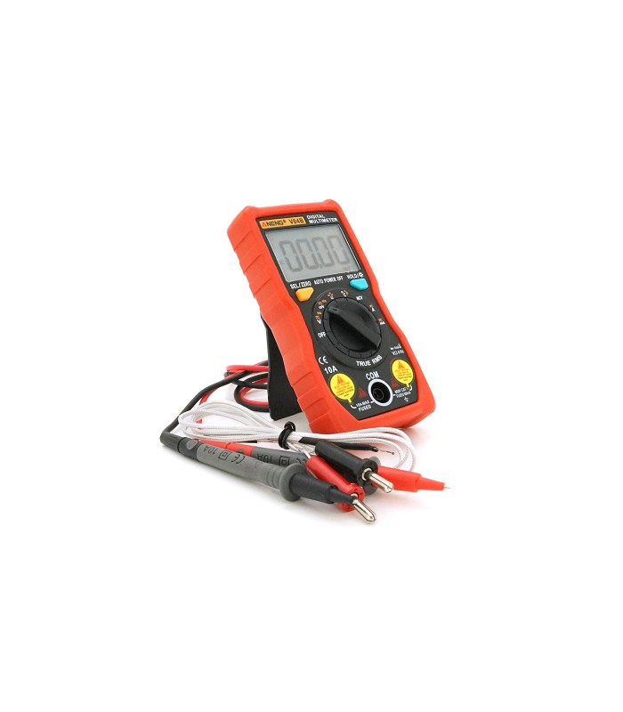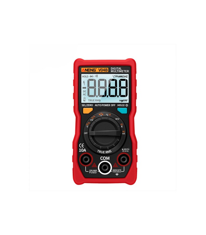 AN-V04B – мультипараметрический портативный мультиметр с незначительными габаритами для удобного использования в полевых и бытовых условиях. Устройство используют для измерения AC/DC напряжения, AC/DC тока, сопротивления, емкости, частоты, температуры, проверки диодов, целостности цепи, бесконтактного детектирования напряжения NCV и истинного среднеквадратичного значения (TrueRMS).
