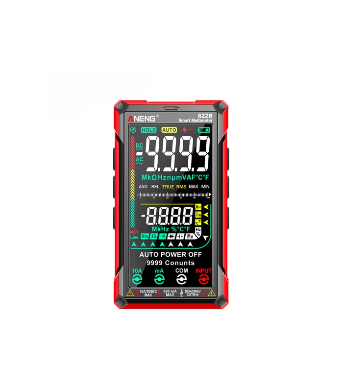 ANENG 622B - это высококачественный, портативный мультиметр с большим цветным инверсным LCD экраном и автоматическим диапазоном измеряемых величин. Устройство автоматически определяет не только диапазон, но и сам измеряемый параметр. Мультиметр позволяет измерять в автоматическом режиме напряжение (постоянное, переменное), силу тока, сопротивление, ёмкость, частоту, температуру.