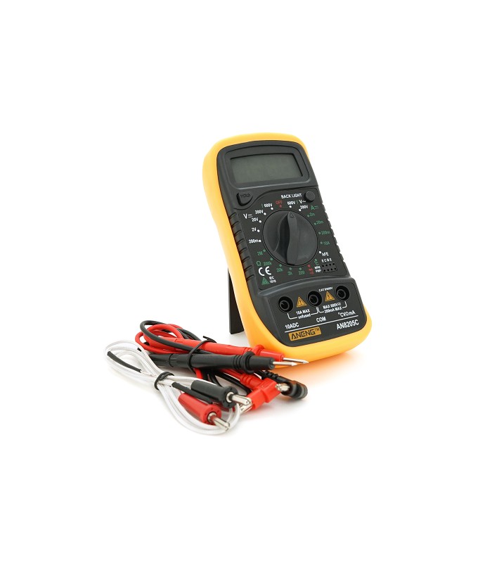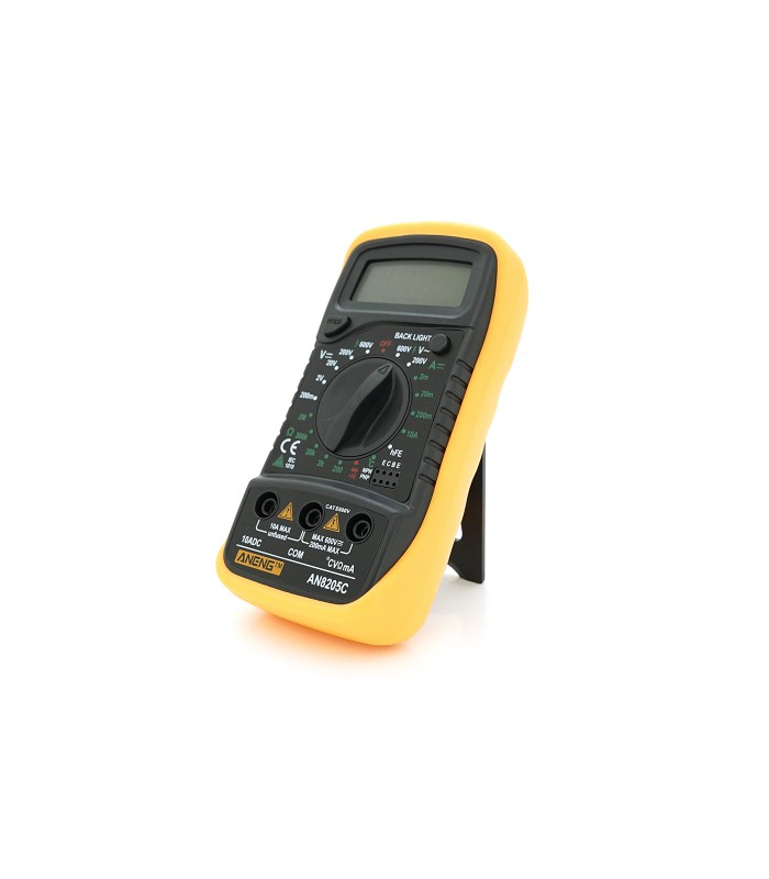 Мультиметр ANENG AN8205C — это компактный и надежный прибор для измерения разных параметров электрических цепей. С его помощью вы можете быстро и точно измерить напряжение, силу тока, сопротивление, температуру и проверить работоспособность транзисторов. Мультиметр имеет удобный и понятный интерфейс, который позволяет легко выбирать режимы измерения и переключать диапазоны. Мультиметр также имеет функцию удержания данных, которая фиксирует последнее измеренное значение на дисплее. Мультиметр ANENG AN8205C подходит для любителей и начинающих электриков, а также для домашнего использования. С этим прибором вы сможете выполнять различные задачи по ремонту и обслуживанию электронной техники.
