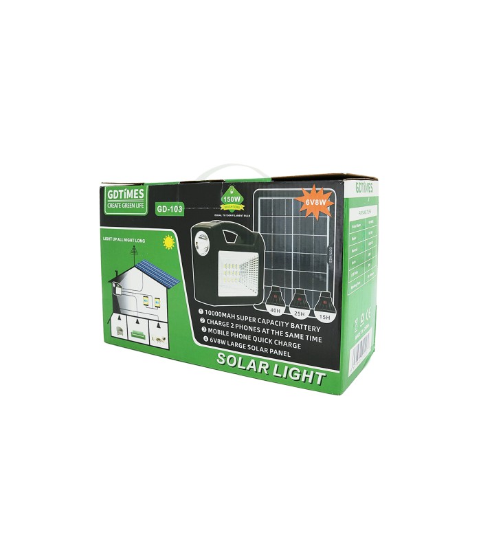 Переносной фонарь GD-103+ Solar - это удобный и компактный фонарь с солнечной батареей, который подойдет для использования в походах, на даче или в аварийных ситуациях. Он оснащен встроенным аккумулятором емкостью 10000mAh, который также может использоваться в качестве Powerbank для зарядки мобильных устройств. Фонарь имеет два USB-выхода и три лампочки мощностью 3W, что обеспечивает яркое освещение.