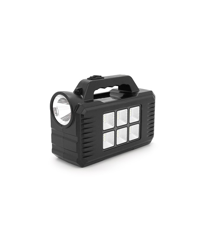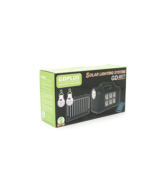 Переносной фонарь GD-8077+ Solar, 1+1 режим, встроенный аккум, 3 лампочки 3W, USB выход, Black, Box