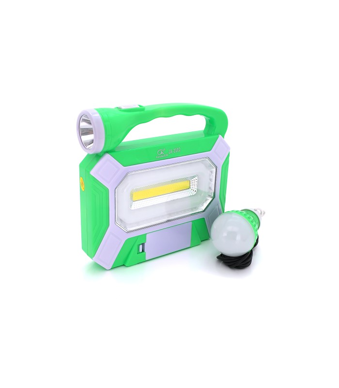Фонарик переносной JA-2002+Solar с 3+1 режимом освещения, лампочкой, встроенным аккумулятором и упакованный в блистер.