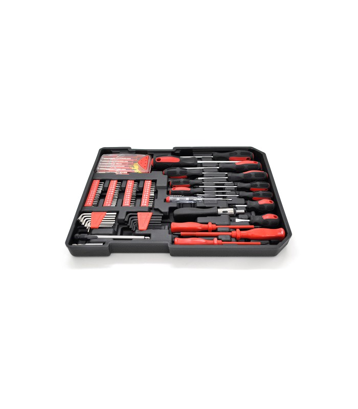 Набор SWISS KRAFT - набор инструментов который должен быть в каждом доме. В нем есть практически все, что может понадобится для ремонта. Он сделан таким образом, что вам удобно будет быстро найти нужную деталь, а их в чемодане аж 499 штук. Колесики на корпусе чемодана и телескопическая ручка, позволяет его транспортировать без особых усилий. Углы чемодана защищены металлическими накладками, поэтому прослужит он долго.