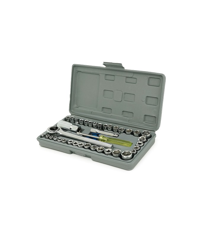 Набор инструмента 40 единиц, Box, представляет собой комплект различных инструментов, упакованных в коробку для удобного хранения и переноски.