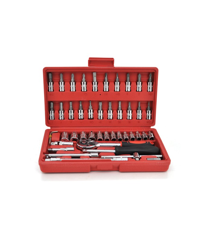 Набор инструментов произведён специально для ремонта и строительства и станет незаменимой вещью в доме каждого хозяина. Набор упакован в красный прочный кейс, изготовленный из жесткого противоударного пластика. Детали данного набора сделаны из высококачественной хромированной стали, которая справится с любой нагрузкой. Его компактность и небольшой вес, позволяют взять его с собой в дорогу, положить в багажник автомобиля не переживая, что он займет много места. Справится с поломкой авто? Без проблем! Ведь в наборе есть много нужных вещей.