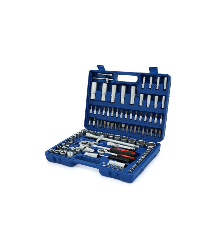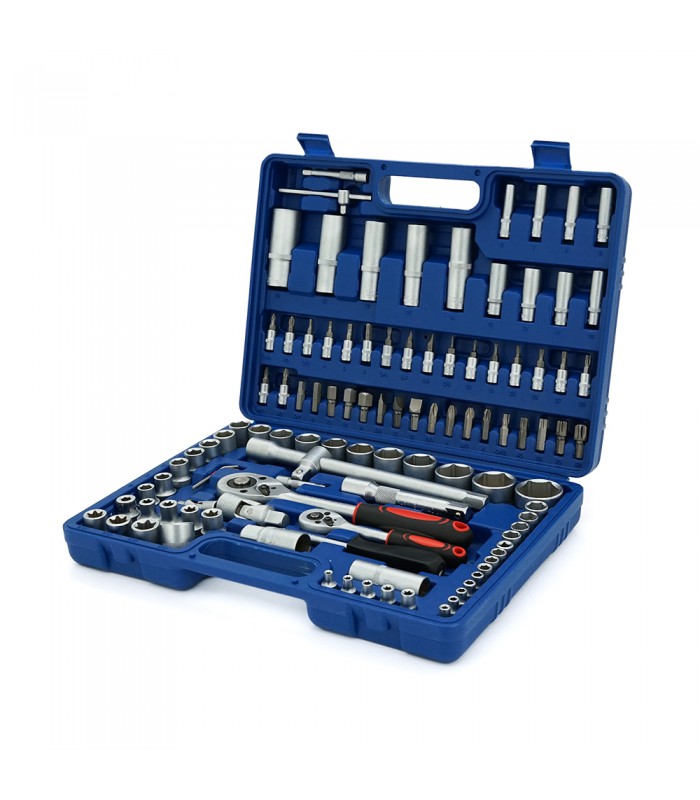 Набор инструментов включает в себя 108 единиц инструментов, упакованных в коробку.