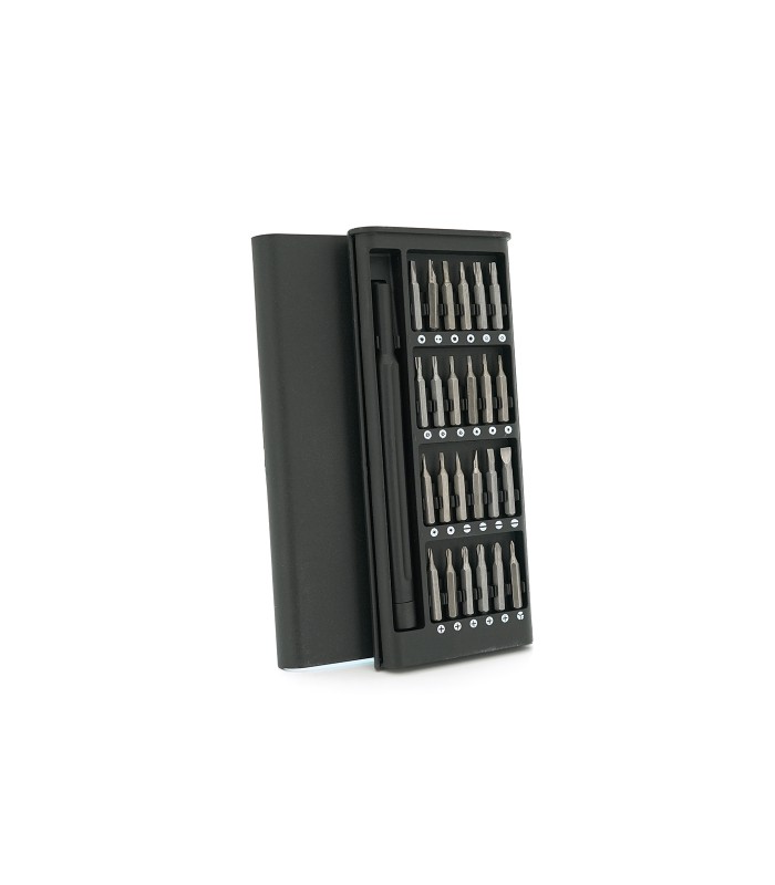 Этот компактный и удобный набор отвертки с битами предназначен для точных работ по ремонту электроники, бытовой техники и других мелких устройств. В комплект входит отвертка-держатель с длиной 115 мм и 24 сменные биты, изготовленные из прочной инструментальной стали S2. Биты оснащены защелкой для надежной фиксации, а рукоятка выполнена из пластика, обеспечивая удобный хват и комфортное использование.