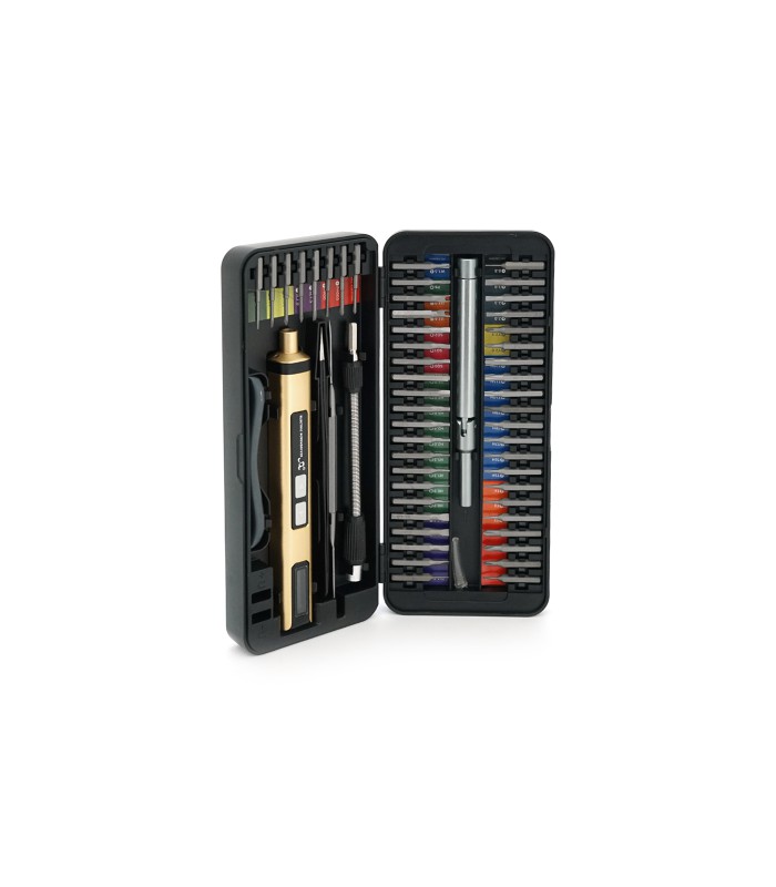 Набор SW-80022 Электро отвертка +биты 50+ лопатка+ пинцет+удлинитель, длина держателя 115 мм, биты S2 магнитная, алюминий, USB к