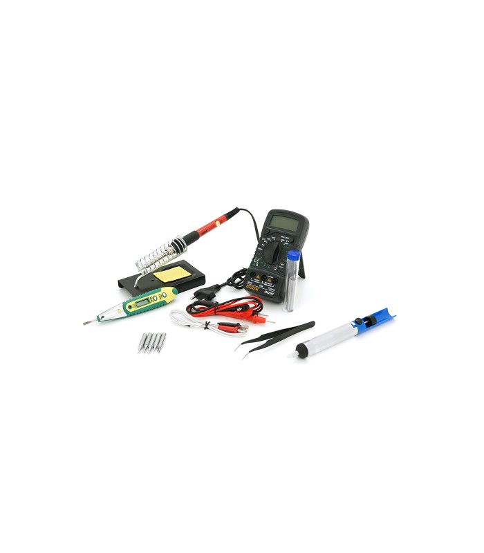 Набор инструментов для пайки ANENG SL-101 включает в себя 16 предметов, необходимых для выполнения различных пайковых работ.