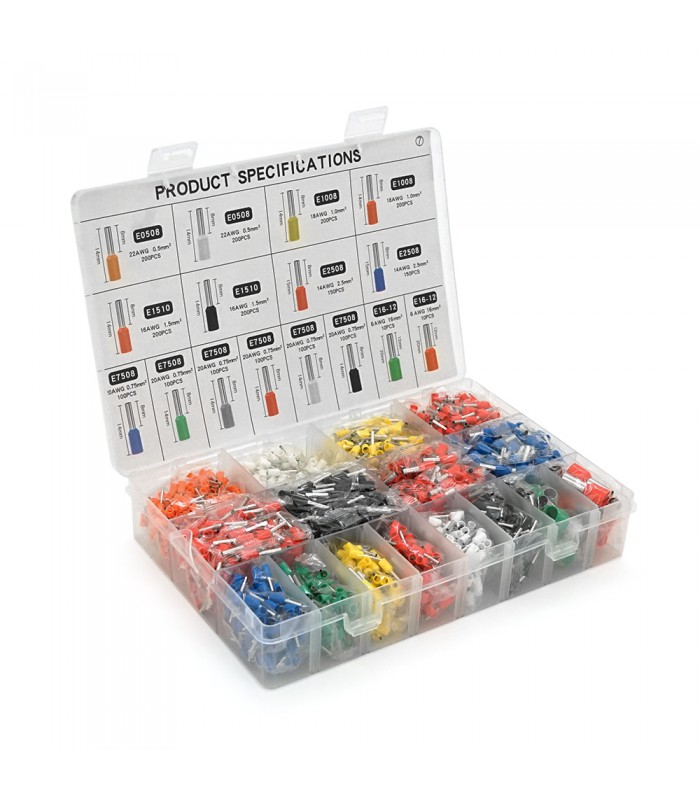 Набор клемм/наконечников 2120шт(E0508o+w-200/2,E2508bl+r-150/2,E1008y+r-150/2,E1510r+bl-200/2,E7508b+g+y+r+w+bl-100/6,E1612r+g-1