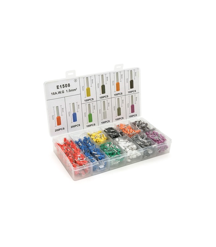 Набор клемм/наконечников 1200шт VE1508 (R-200, B-200, Y-100, Bl-100, O-100, P-100, G-100, W-100, Gr-100, V-100) в боксе
