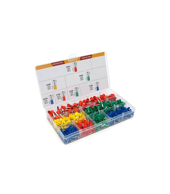 Набор клемм/наконечников 700шт(E2508y-100,E1008g-100,E1508b-100,E4009g-100,E1008g-100,E6012r-100.E7508r-100.E0508b-100)в боксе