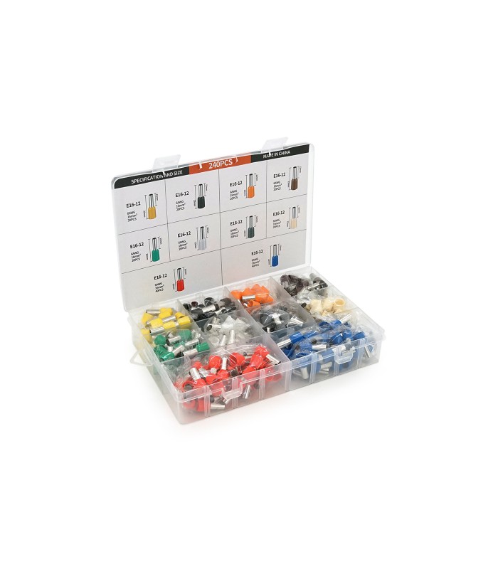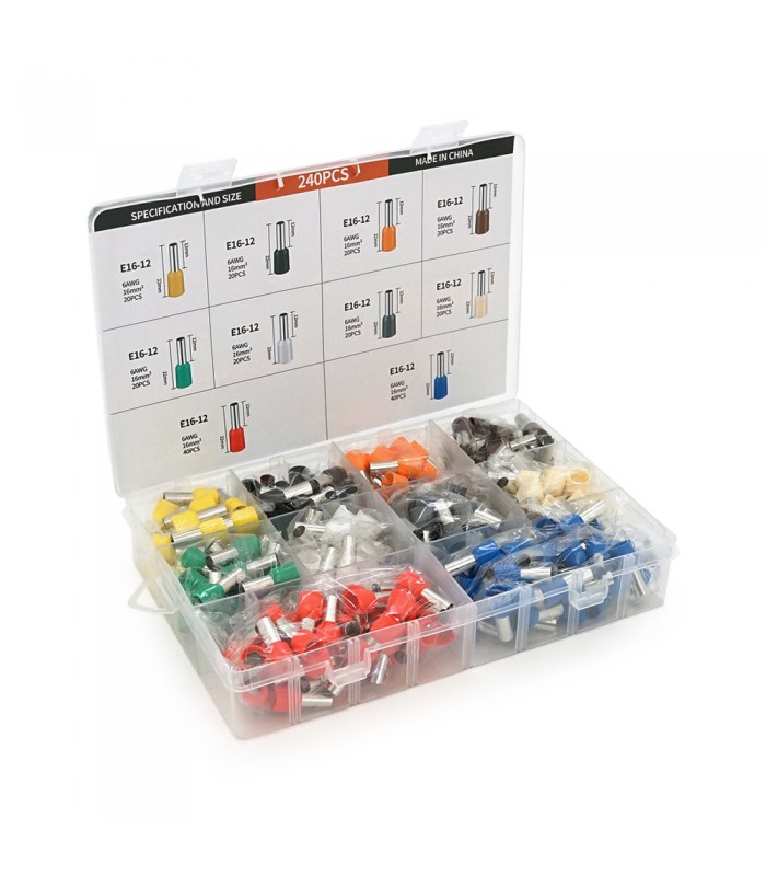 Набор клемм/наконечников 240шт VE16-12 (R-40, B-40, Y-20, Bl-20, O-20, P-20, G-20, W-20, Gr-20, V-20) в боксе