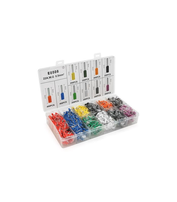 Набор клемм/наконечников 2400шт VE0508 (R-400, B-400, Y-200, Bl-200, O-200, Br-200, G-200, W-200, Gr-200, V-200) в боксе