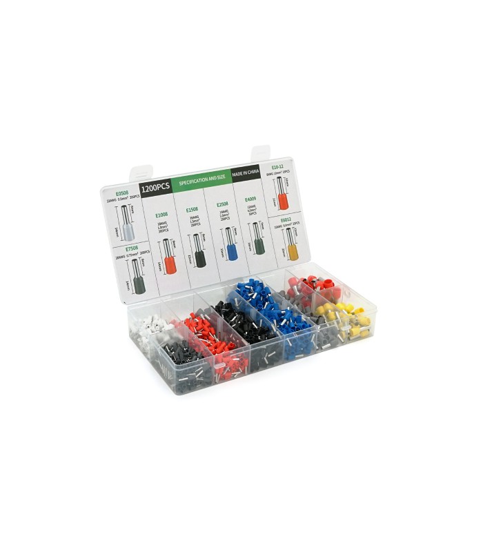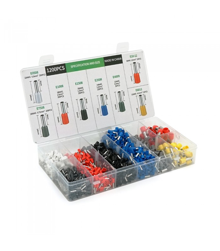 Набор клемм/наконечников 1200шт(E0508w-200 E2508b-250,E1008r-200,E1508bl-250,E4009gr-50,E7508gr-200,E6012y-25. E1012r-25) в бокс
