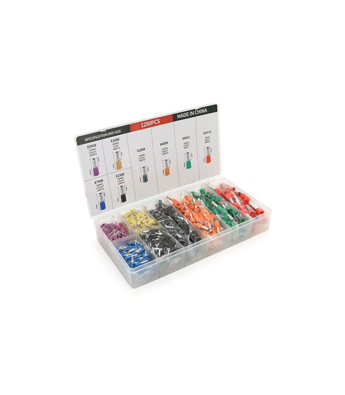 Набор клемм/наконечников 1280шт (E0508v-200, E7508b-200, E1008y-200, E1508bl-150, E2508gr-250, E4009o-150, E6012g-80, E1012r-50)