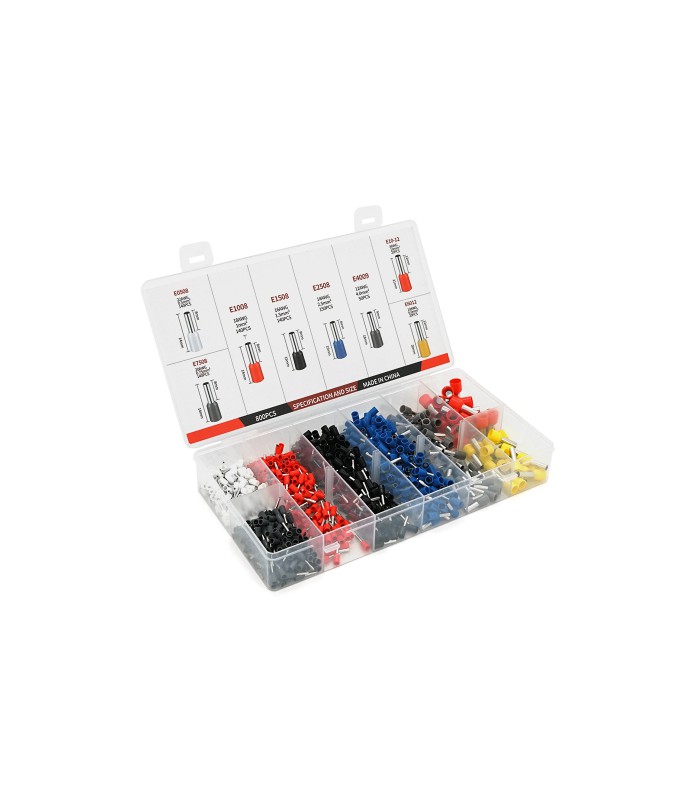 Набор клемм/наконечников 800шт(E0508w-140 E2508b-140,E1008r-140,E1508bl-140,E4009gr-50,E7508gr-140,E6012y-25,E1012r-25)в боксе