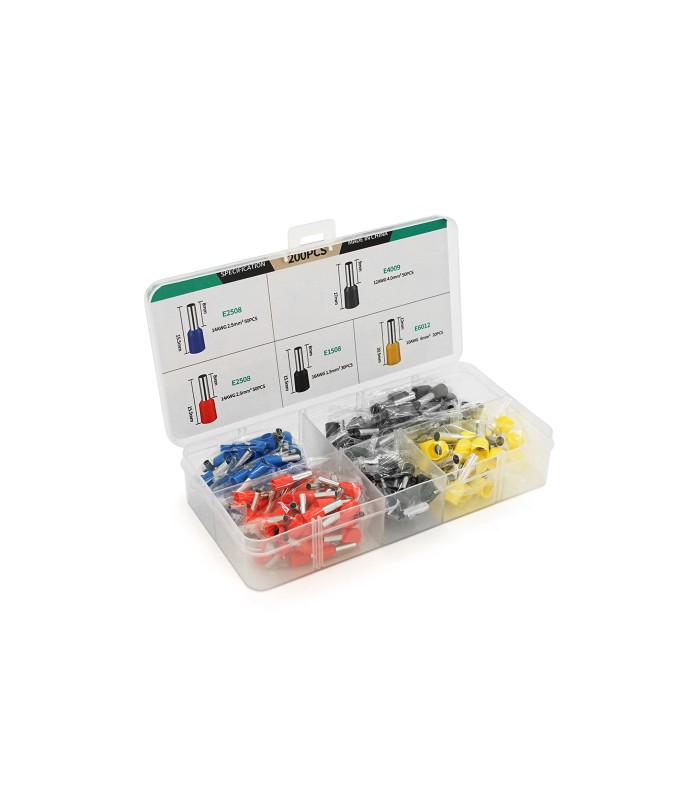 Набор клемм/наконечников 200шт(E4009gr-50,E2508r+b-50/2,E1508bl-30,E6012y-20)в боксе