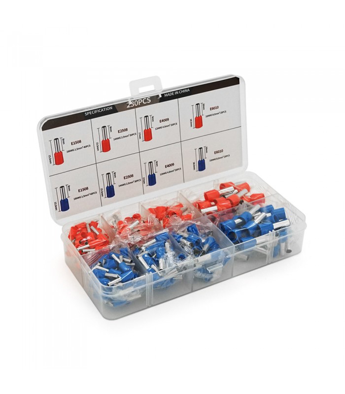 Набір клем/наконечників 230шт(E4009r+b-20/2,E2508r+b-30/2,E1508r+b-40/2,E6010r+b-25/2)у боксі
