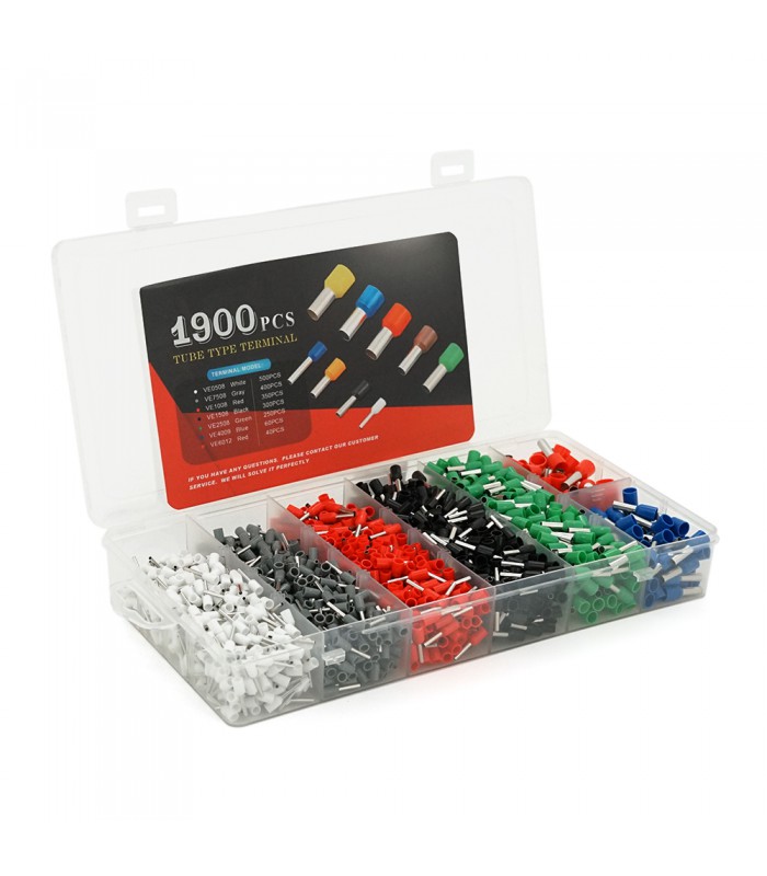 Набор клемм/наконечников 1900шт (E0508w-500, E7508g-400, E1008r-350, E1508bl-300, E2508b-300, E4009g-60, E6012r-40) в боксе