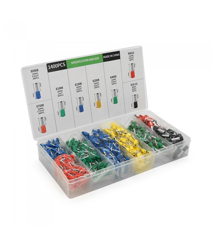 Набор клемм/наконечников 1400шт(E0508b-200 E2508y-230,E1008g-300,E1508b-300,E4009g-100,E7508r-200,E6012r-45,E1012bl-25)в боксе