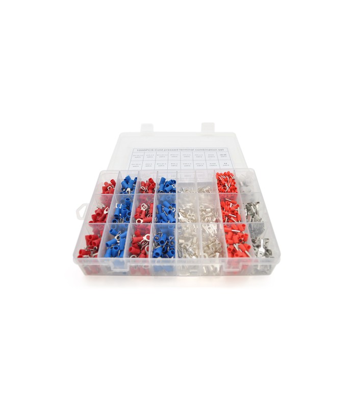 Набор клемм/наконечников CEOURV1000** - это универсальный набор, который подходит для различных задач по электромонтажу. Он включает в себя широкий ассортимент клемм и наконечников, которые могут использоваться для соединения кабелей с различными устройствами, такими как аккумуляторы, распределительные коробки, розетки и выключатели.