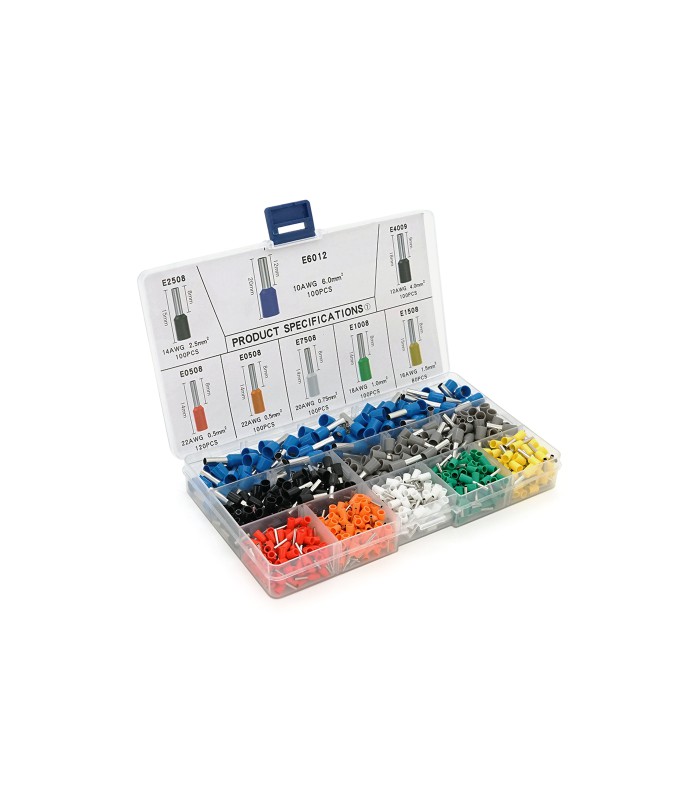 Набор клемм/наконечников 800шт (R-100, B-100, Y-100, Bl-100, O-100, W-100, Gr-100, G-100) в боксе