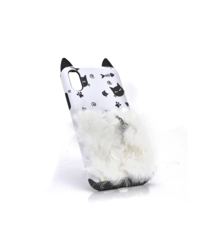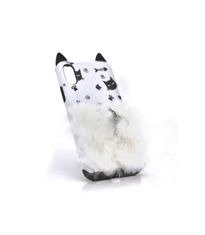 Накладка для iPhone 6/6s с изображением пушистого кота с хвостом, представленная в белом цвете.
