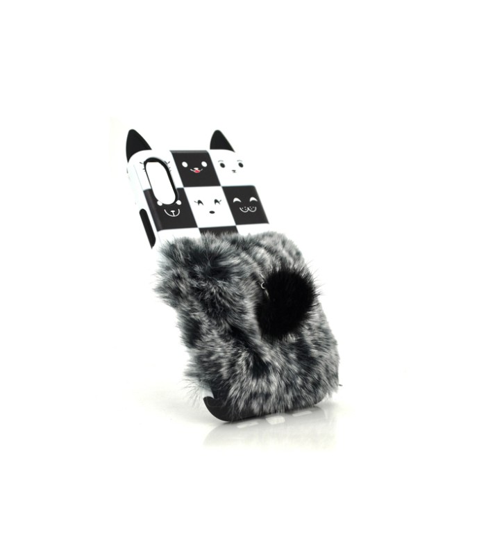 Накладка для iPhone 7/8 с изображением пушистого кота с хвостом. Цвет - черный.
