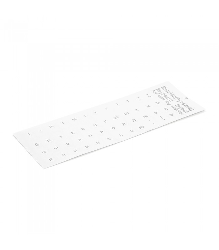 Опис: Наклейки на прозорі клавіатури з білими літерами в російській розкладці.