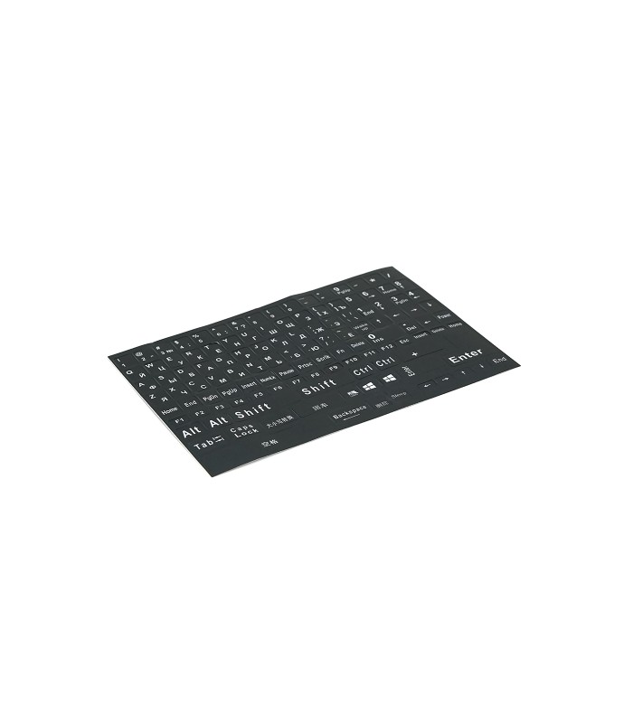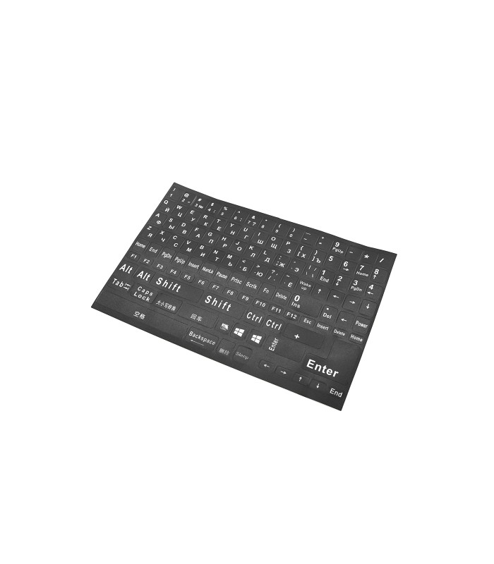 Наклейки на клавиатуру черные с белыми Англ. буквами и белыми Рус.буквами