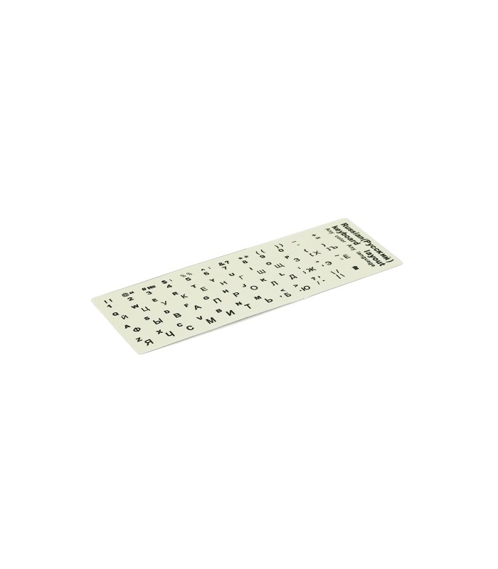 Набор прозрачных наклеек с черными буквами на русском и английском языках, с эффектом фосфоресценции.