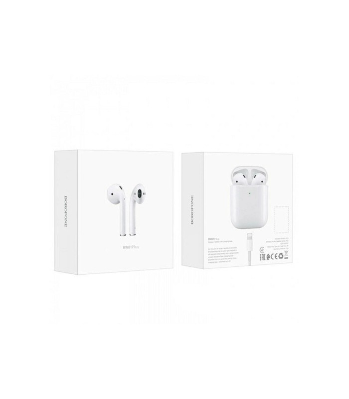 Наушники Bluetooth Borofone BW01 Plus - стильные беспроводные наушники в белом цвете с удобным кейсом для хранения.