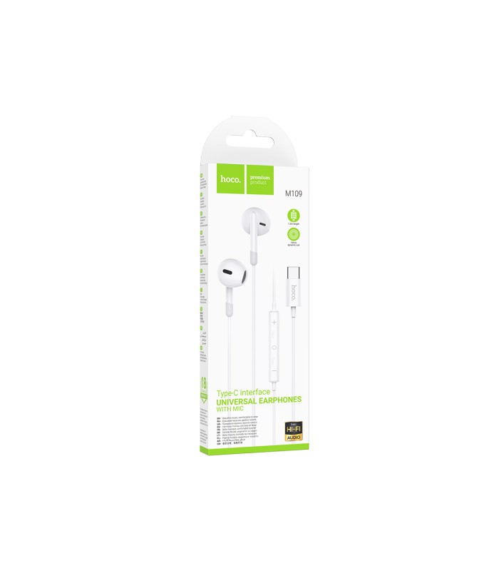 Наушники проводные HOCO M109, разъем Type-C, 1.2m, White, Box