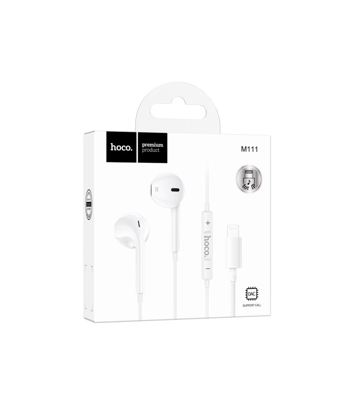 Наушники проводные HOCO M111, разъем Lighting, 1.2m, White, Box