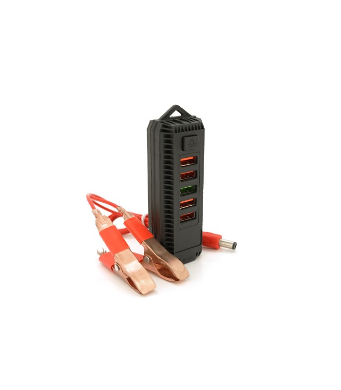 Портативный HUB ZS-11-2 с крокодилами на 4*USB2.0+USB3.0, питание 12В, Black, Box